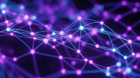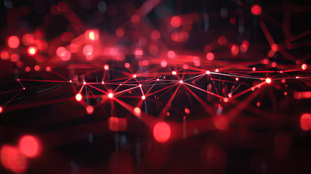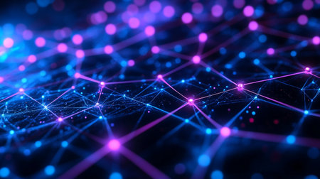 A stunning close-up of a futuristic network showcasing glowing nodes and connecting lines, emphasizing themes of technology, communication, and digital connectivity.