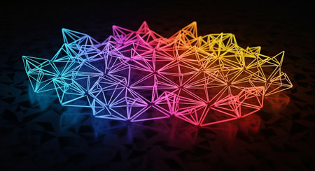 lattice structure with intersecting neon lines forming complex geometric patterns