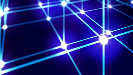 abstract 3d illustration of a network of lines and dots in ultraviolet light