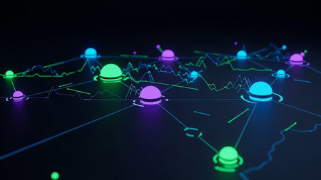 Abstract render of interconnected glowing nodes with vibrant colors, AI generated