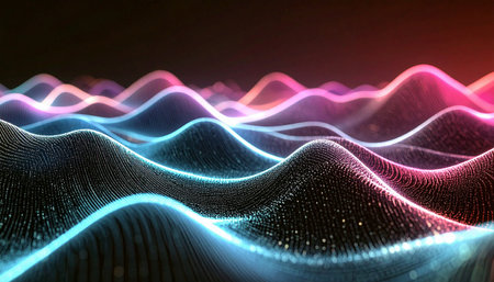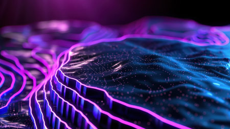 This stunning abstract digital landscape features luminous waves and neon-like contours in vibrant colors, perfect for creative projects and visual inspiration.