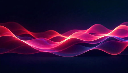 Abstract flowing waves with glowing red and purple hues
