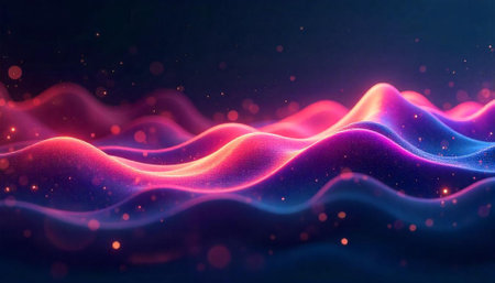 Abstract glowing wavy landscape with soft gradients and bokeh