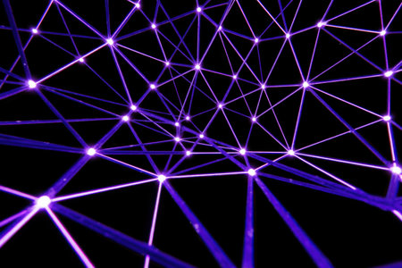 abstract 3d illustration of a network of lines and dots in ultraviolet light