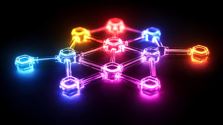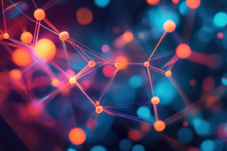 Abstract render of interconnected glowing nodes with vibrant colors, AI generated