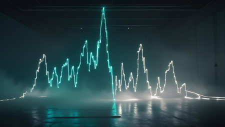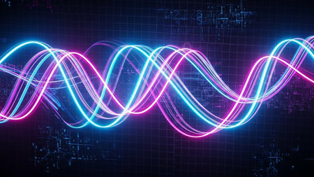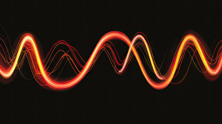 Sound waves oscillating with the glow of light, abstract technology.
