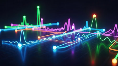An abstract illustration features vibrant, interconnected lines and glowing nodes, representing data streams. The dynamic composition uses multiple colors against a dark background, suggesting a digital or technological environment. Suitable for conceptual illustrations, the image is appropriate for presentations or editorial content.