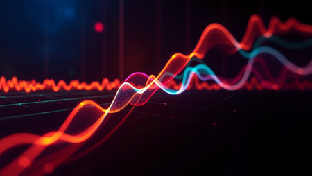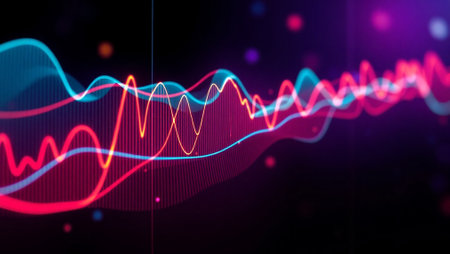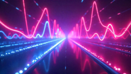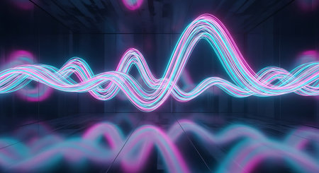 A dynamic visual representation of sound waves in vibrant neon colors, showcasing intricate patterns and pulsating energy. This abstract digital art evokes the essence of audio and technology.