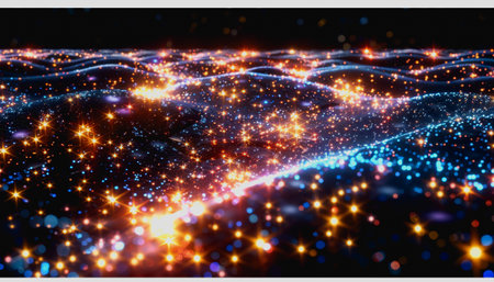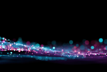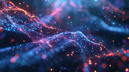 Captivating digital abstract background featuring a mesmerizing display of vibrant glowing particles and trails creating a futuristic and ethereal atmosphere The dynamic
