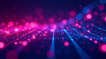 Vibrant Digital Waves of Dotted Lights in Blue and Pink Hues