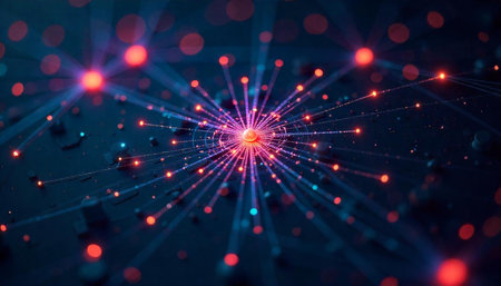 Colorful energy lines and luminous dots create a stunning representation of active communication and data flowing through a digital space.