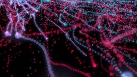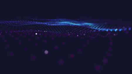 Abstract background with the movement of luminous particles. Digital technology connection concept.