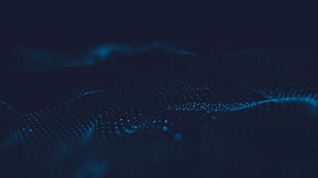 Wave 3d. Wave of particles. Abstract Blue Geometric Background. Big data visualization. Data technology abstract futuristic illustration.
