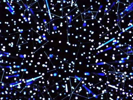 Abstract background with the movement of luminous particles. Digital technology connection concept.