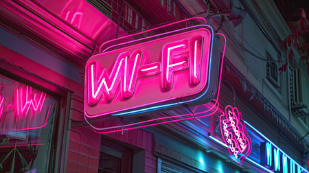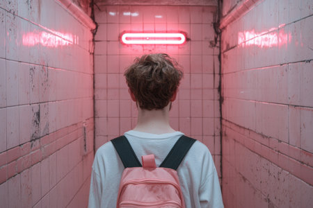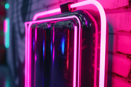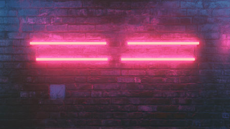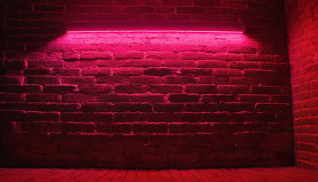 Retro urban scene with pink neon lights on vintage brick wall, perfect for creative designs