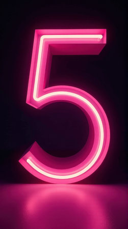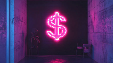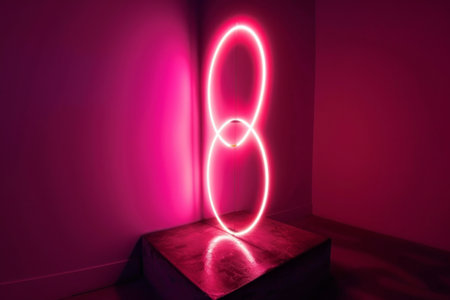A futuristic pink neon sculpture casts a vibrant, electric glow, illuminating a dark, modern space.