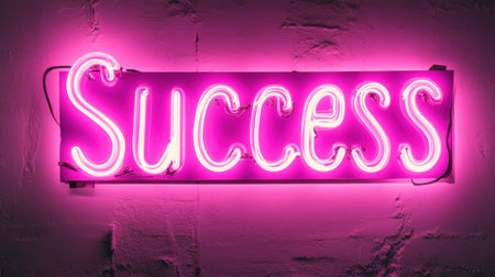 A striking neon sign features the word Success in an eye-catching pink glow, creating a modern and vibrant aesthetic for motivational spaces.