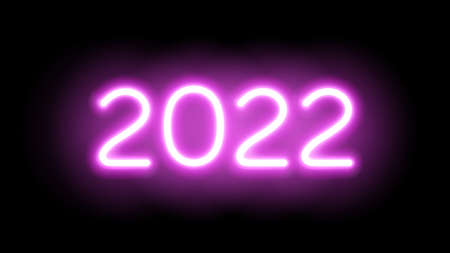 Pink Neon Glowing Sign 2022. New Year 2022 symbol. Bright beautiful inscription isolated on black background. Vector illustration