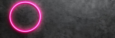 Neon Pink Circle on Dark Textured Background, Abstract Design with Copy Space for Marketing