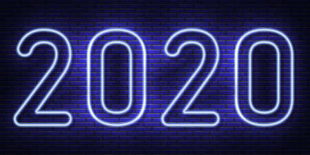 2020 neon text. Neon 2020 new year sign. vector illustration.