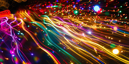 Abstract colorful light trails and bokeh background, vibrant neon lines depicting glowing motion in a mesmerizing display