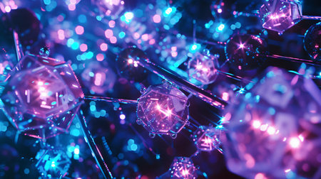 Vivid glowing shapes in a futuristic, neon effect against a dark backdrop in a complex cyber energy pattern
