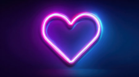 A glowing neon heart design stands out with vibrant pink and blue hues against a dark background, creating an engaging visual display full of energy.