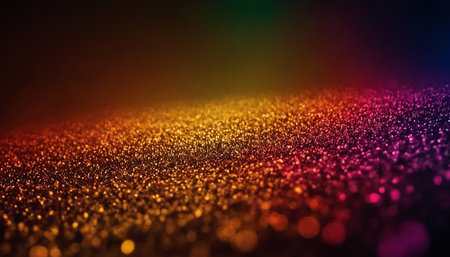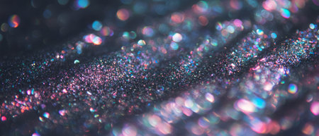 Sparkling glitter texture with colorful particles on a dark background for festive designs