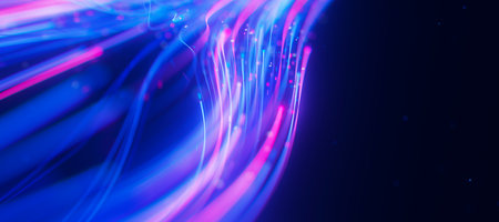Inside Bigdata light speed data flow closeup. Abstract digital data stream of quantum computing. Cyberspace of qubit trails. Modern tech information transmission.