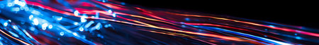 Abstract background with dynamic blue and red glowing light lines in motion, representing technology, energy and digital patterns.