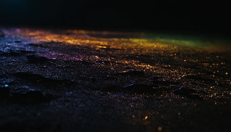 Close up of glitter particles glowing with copy space background, ideal for festive themes, celebration visuals, luxury design projects, abstract textures, and creative decoration concepts.
