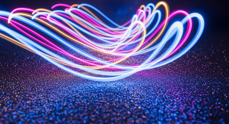 Capture the essence of motion with vibrant abstract light trails. This dynamic image features swirling colors and glowing lines that convey energy and creativity. Perfect for modern design projects.