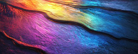 A bright textured surface with a rough, sand-like texture, glowing with vivid colors that give a sense of energy and warmth.