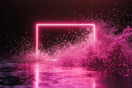 A neon pink rectangular frame amidst a dramatic particle splash, great for edgy fashion promos, vibrant event posters, or modern digital art. Generative AI