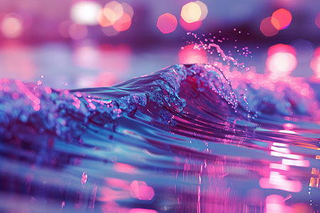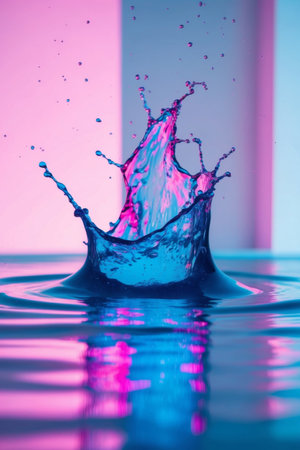 AI Generated. Blue Water Splash with Neon Pink and Purple Reflections