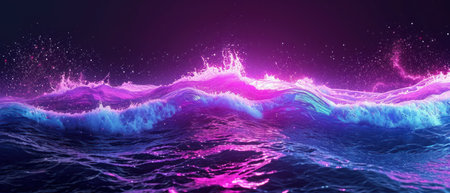Captivating neon waves surge with electric energy against a dark abyss. Experience a mesmerizing dance of light and liquid, perfect for tech, music, or abstract themes.