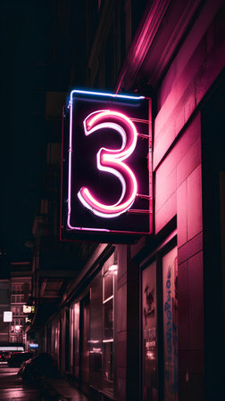 Glowing neon number nine sign in dark alleyway