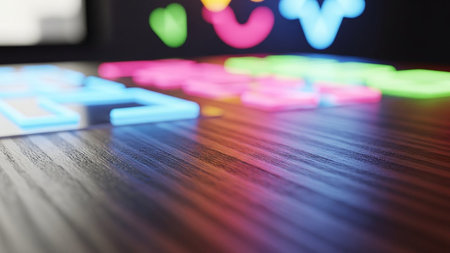 Brightly lit digital devices in neon colors create a vibrant and modern technology display, highlighting innovation.