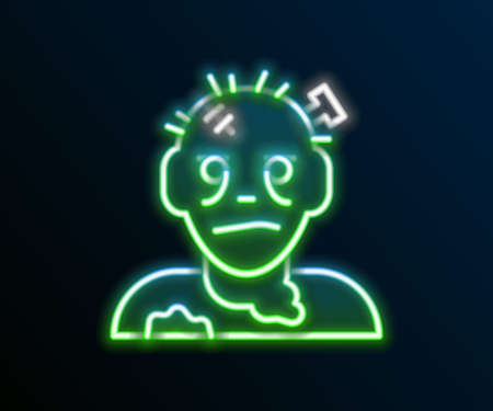 Glowing neon line Zombie mask icon isolated on black background. Happy Halloween party. Colorful outline concept. Vector