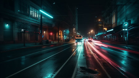 Vibrant night traffic flow showcasing urban life through long exposure techniques