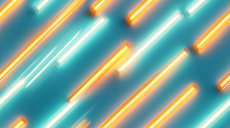 Brightly colored neon tubes create a stunning visual effect in this modern design. The vibrant hues and soft background evoke a dynamic and energetic atmosphere.