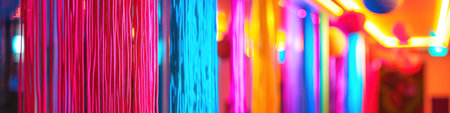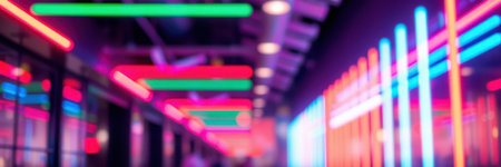 Vibrant neon lights illuminate a modern interior in a lively nightlife venue during an exciting evening