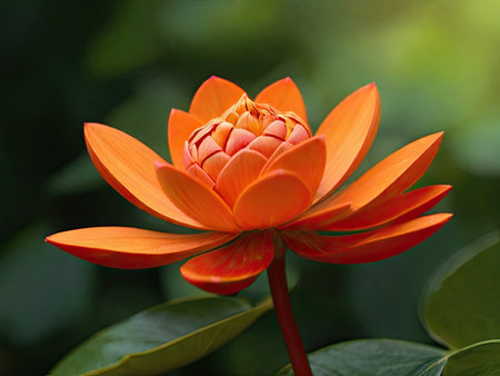 Radiant Red Lotus Flower Blooming in Tranquil, Serene Ambiance