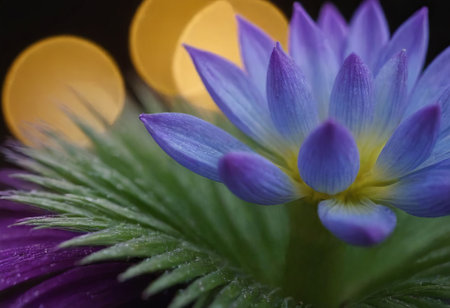 Vibrant purple daisy, wet with dew drops generated by artificial intelligence