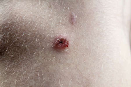 3D illustration of a close-up of skin cancer like the malign melanoma inflaming surrounding tissue.