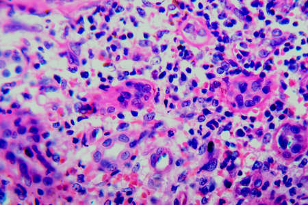 Hodgkin's lymphoma, light micrograph, photo under microscope. High magnification