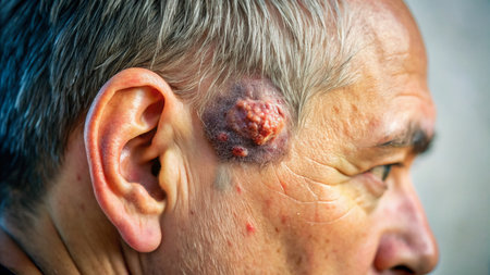 Close-up Medical Image: Lipoma Growth on Scalp - Documentary Photography Style