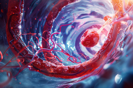 Microscopic View of Red and White Blood Cells Flowing Through a Vein or Artery in the Human Body