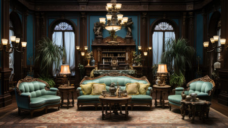 Discover a breathtaking vintage parlor filled with elegant furniture, ornate decor, and soft colors that create a cozy and sophisticated atmosphere.