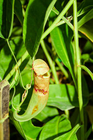 Nepenthes, tropical pitcher plants in tropical rainforest garden,or monkey cups.